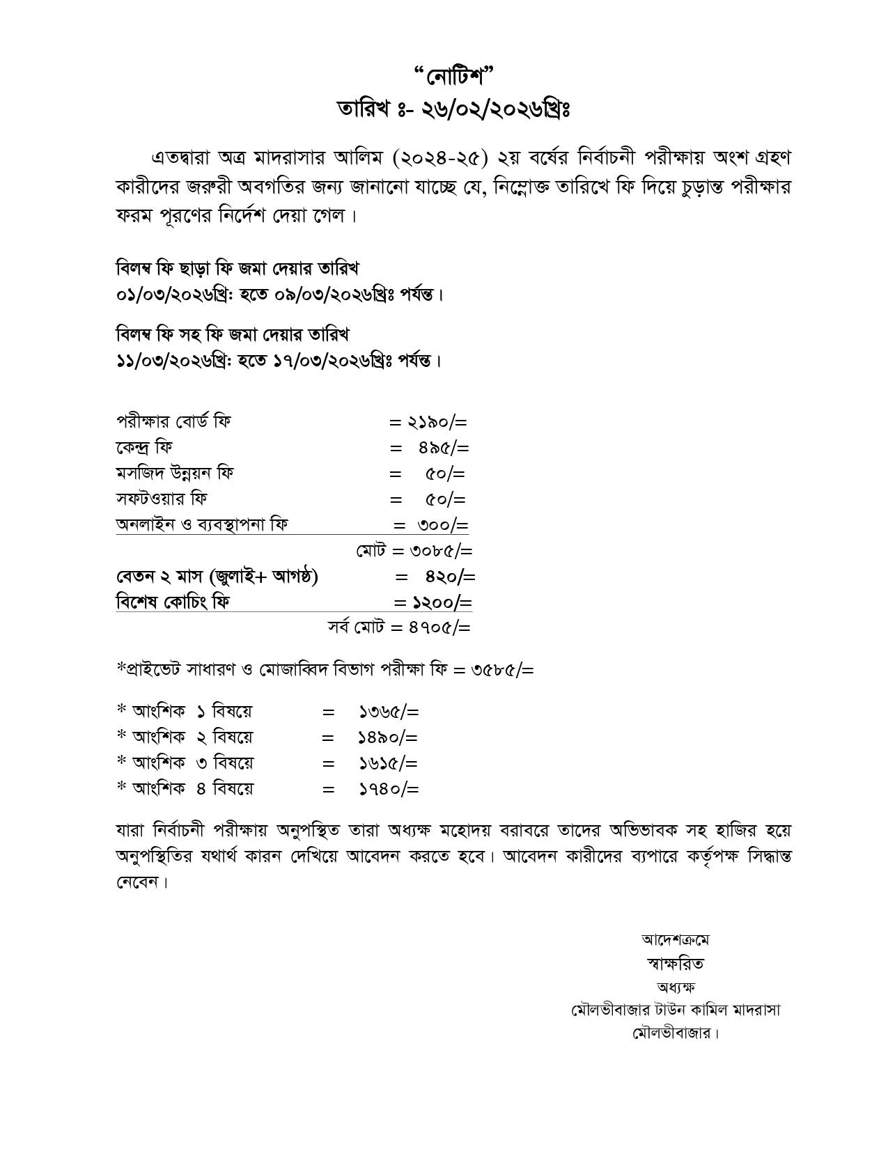 ২০২৬ সালের আলিম পরীক্ষার ফরম পূরণের বিজ্ঞপ্তি